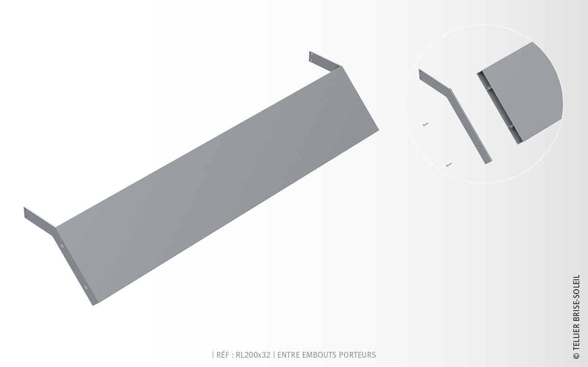 Le brise-soleil Recti'Ligne avec un système de pose entre embouts porteurs est composé de :