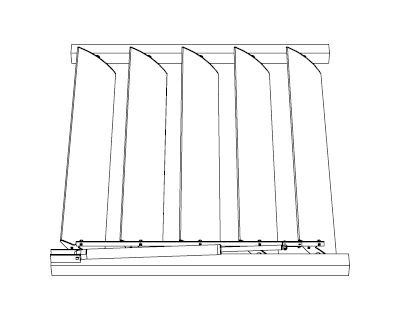 - La barre de manœuvre est à fixer sur les embouts de commande, afin de relier les lames au vérin (motorisé) ou au compas de manœuvre (manuelle) ;
